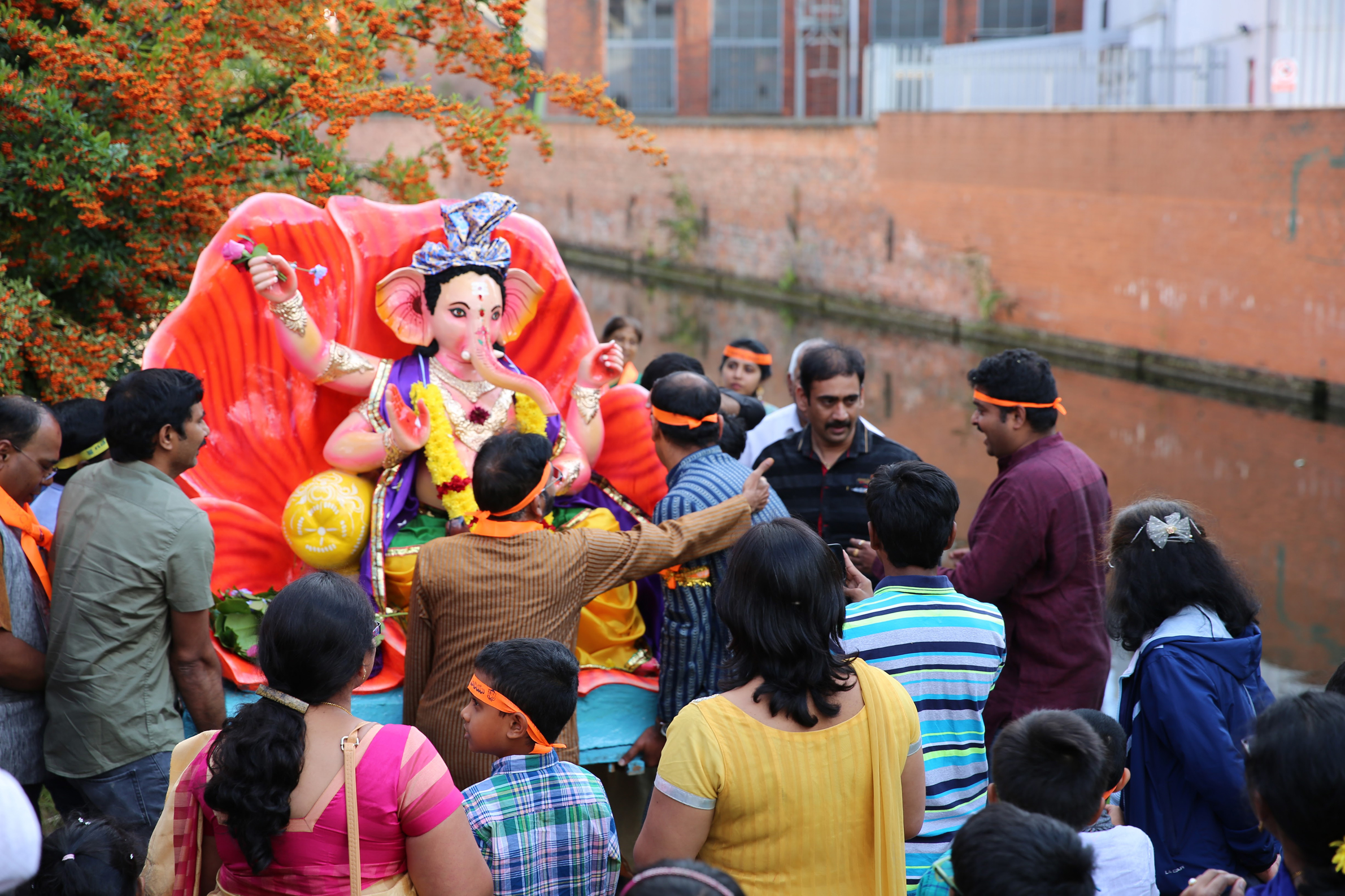 After the Laddu auction, Lord Ganesh is offered prayers and the Ganesha idol is taken through the BIRMINGHAM streets in a procession accompanied with chanting,